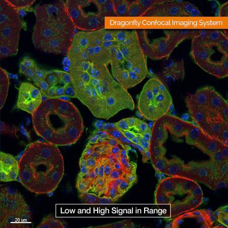 Dragonfly在16-bit動(dòng)態(tài)范圍內(nèi)進(jìn)行成像,在單次成像中可同時(shí)獲得低信號(hào)和高信號(hào)細(xì)節(jié)。