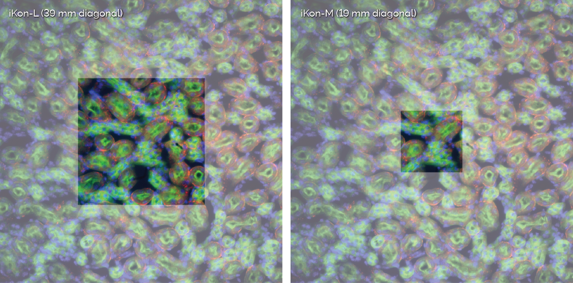 iKon-M采用了19毫米的對(duì)角線,采用C-Mount接口,最大限度地提高了視野。使用420萬像素傳感器和F-mount的iKon-L可以提供更大的39毫米視野。延長(zhǎng)管組可用于調(diào)整焦距。此外,iKon XL型號(hào)具有令人印象深刻的87毫米視野!