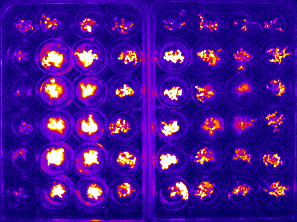 細(xì)菌生物發(fā)光在細(xì)菌細(xì)胞間通訊(稱為群體感應(yīng))中起著關(guān)鍵作用。眾所周知,群體感應(yīng)允許在改變種群密度和響應(yīng)環(huán)境條件期間改變基因表達(dá)。它在生物膜形成和毒力方面也很重要。細(xì)菌發(fā)光也可用于作為熒光素酶報(bào)告基因表達(dá)、細(xì)胞活力測(cè)定或作為生物傳感器的基礎(chǔ)進(jìn)行靈敏測(cè)量。細(xì)菌發(fā)光甚至比其他形式更弱,這意味著成像檢測(cè)器必須在幾分鐘的曝光持續(xù)時(shí)間內(nèi)具有最小的噪聲。iKon 深度冷卻 CCD 相機(jī)因此非常適合這些研究,其同類優(yōu)秀的低噪聲性能允許檢測(cè)表達(dá)的細(xì)微變化。