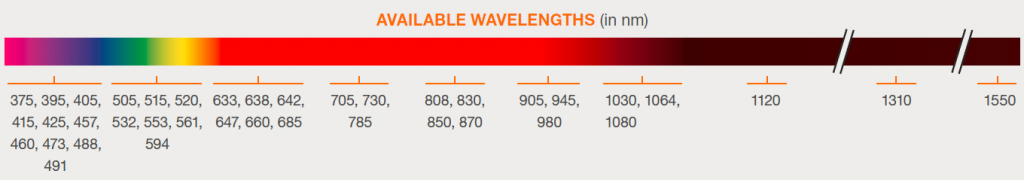 可合束激光波長范圍覆蓋375-1550nm,功率可達400mW。